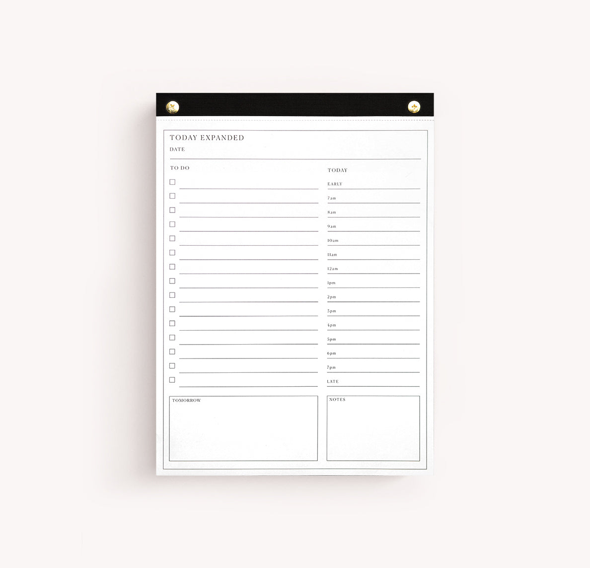 This desk pad is designed to help you organize your day. With tear-away pages, brass hardware, & FSC-certified paper, this checklist helps you stay focused on what matters.