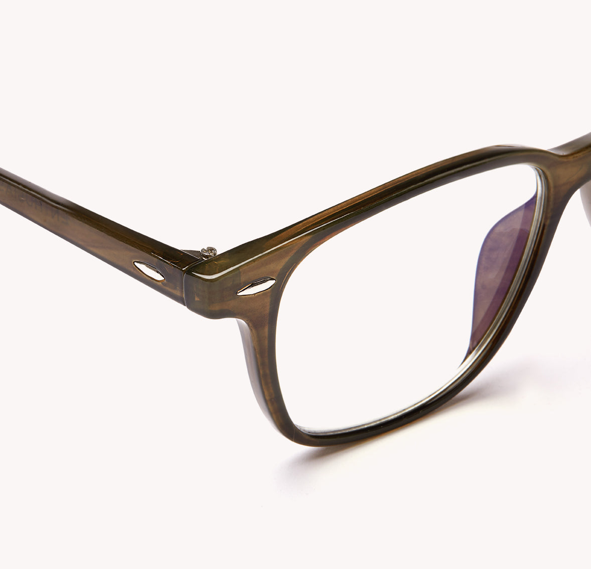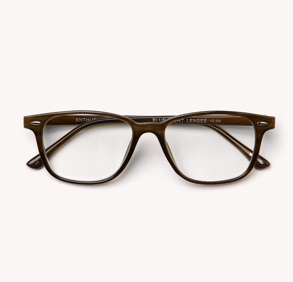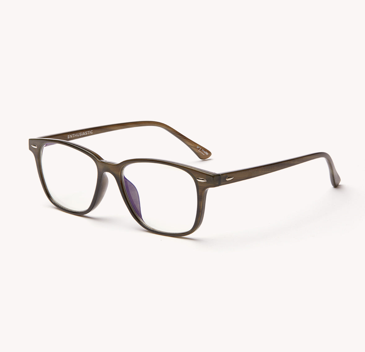 Our Enthusiastic Blue Light Glasses offer a sophisticated look with its neutral brown frame in a modified square shape to flatter all face shapes. Accented with silver metal rivets, this style is a must-have for everyday protection and wear.