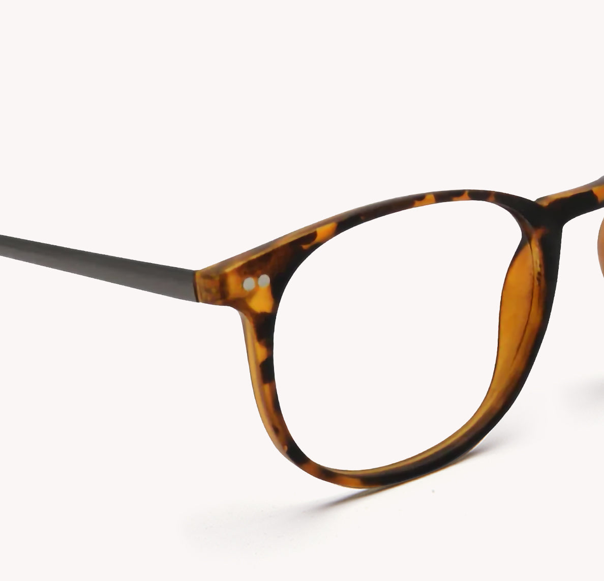 The Practical Blue Light Glasses are a timeless classic. A round soft touch tortoise frame with gunmetal temples and silver rivets. Gry Mattr Blue Light Glasses are the stylish answer to the blue light rays we are all exposed to from constant, daily exposure to digital devices. These glasses are made from 100% recycled RPCTG material. Be the change that makes a difference while not compromising style or the environment.