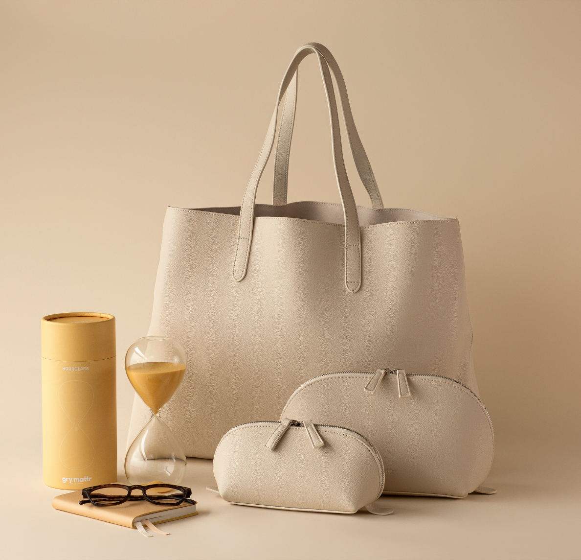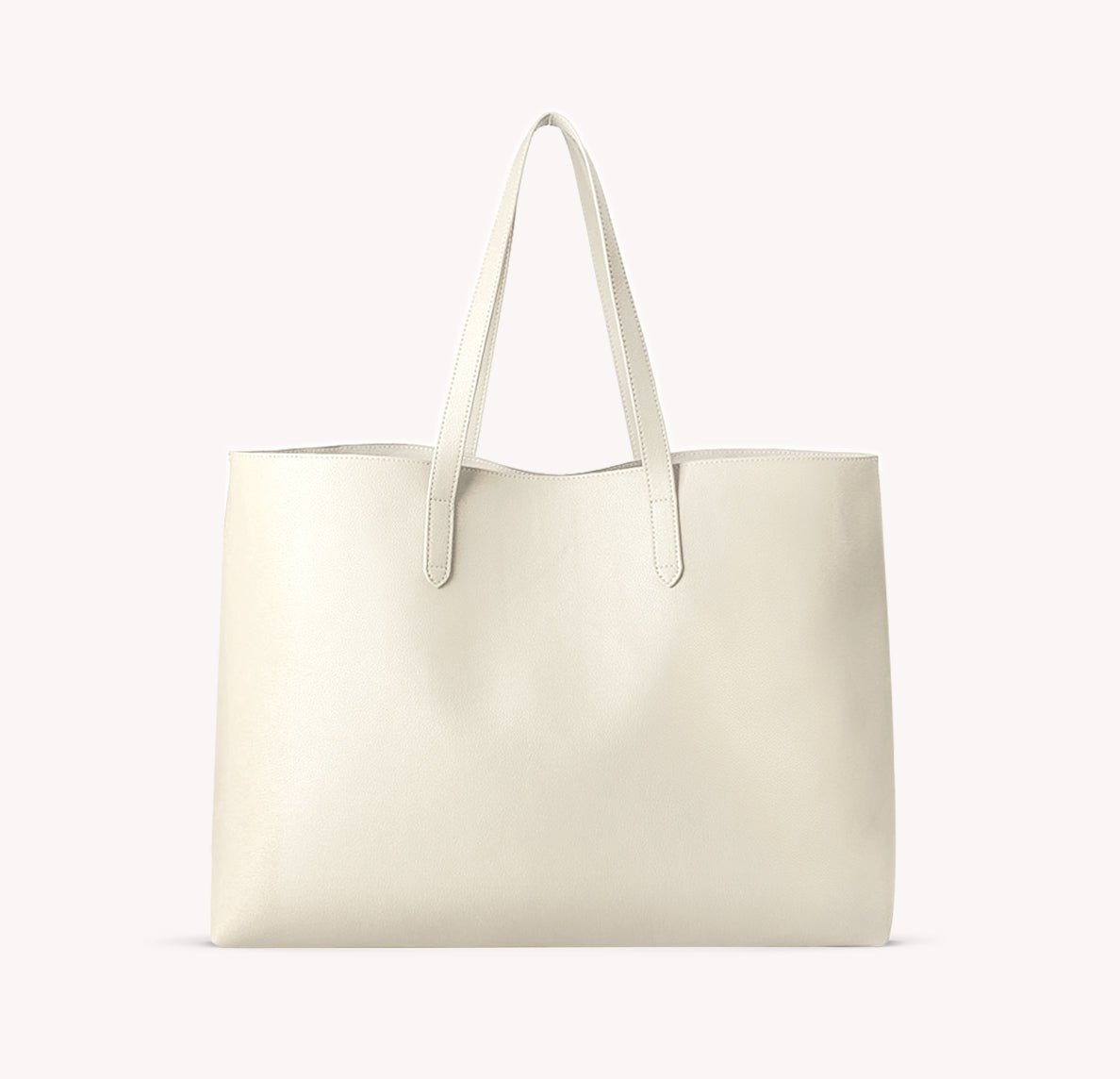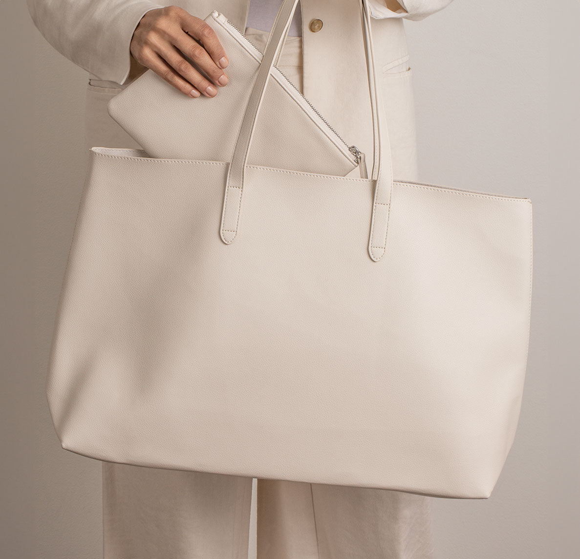 This large and stylish vegan leather tote bag is perfect for anyone on the go and comes in three modern colors. An inside pocket helps keep your phones, keys, or wallet organized.